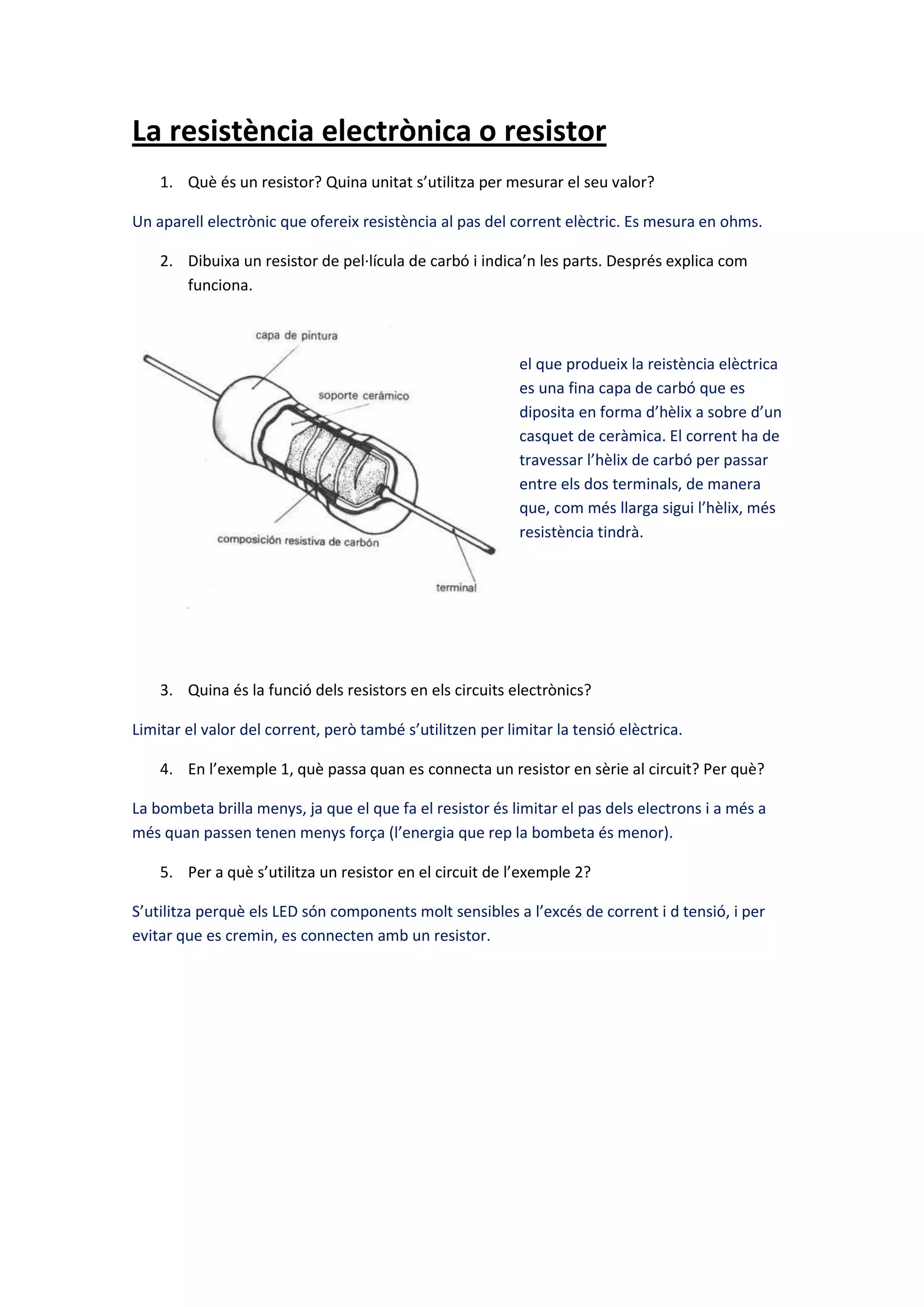 1. Què és un resistor? Quina unitat s’utilitza per mesurar el seu valor?