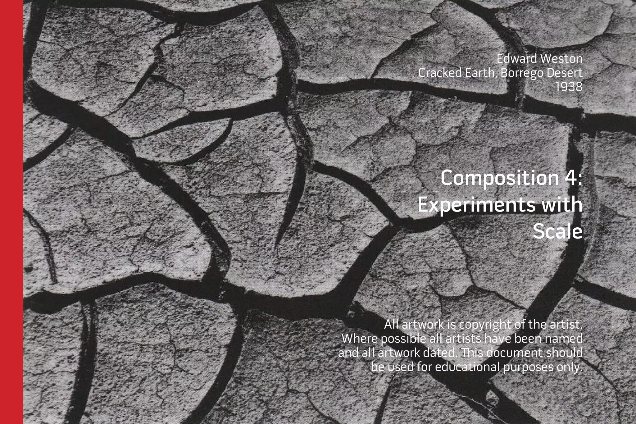 The document discusses the effects of scale in photography, illustrating how altering proximity can render familiar subjects abstract and evoke curiosity in viewers. It highlights various artists and their works that experiment with scale, revealing textures and details often overlooked, while also utilizing techniques like tilt-shift photography to create surreal effects. Additionally, it emphasizes how scale can serve as a metaphor and impact the perception of both natural and man-made objects.