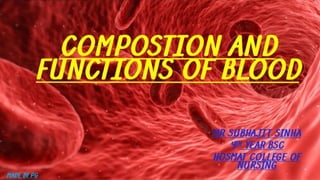 Hemoglobin (or) thered pigment is the most important constituent of RBCs. It gives the blood, its characteristic