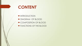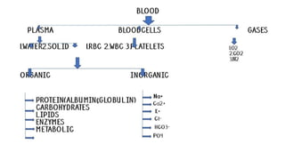 Bloodis composed of plasma and blood cells. Gases are present in blood are O2 , Co₂