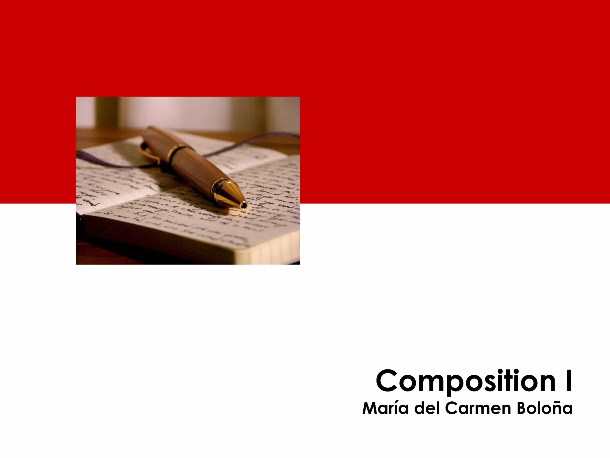 The document outlines the course goals and specific objectives for an academic writing class led by María del Carmen Boloña, focusing on analytical reading, writing skills, research, and critical thinking. It details the grading structure, emphasizing attendance, participation, quizzes, writing portfolios, and exams. The course aims to enhance students' writing proficiency and collaborative skills through various assignments and learning methods.