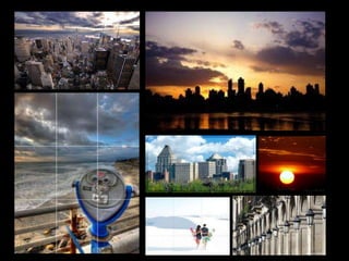 The document discusses several techniques for improving photo composition, including following the Rule of Thirds for subject placement, using contrast in lighting and size/shape to add depth and drama, blurring backgrounds to isolate subjects, paying attention to helpful details, opting for simplicity over complexity, and varying perspectives by changing the camera position. Mastering these techniques can help photographers direct viewer attention and tell more compelling visual stories through their photos.