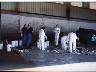 The document discusses the composition, types, and characteristics of municipal solid waste (MSW), emphasizing the importance of analysis for effective waste management planning. It provides insights into the sources of MSW, typical distribution of components, and methodologies for conducting field investigations and sampling. The analysis aims to identify material suitability for processing, recovery, and recycling while informing future management technologies.