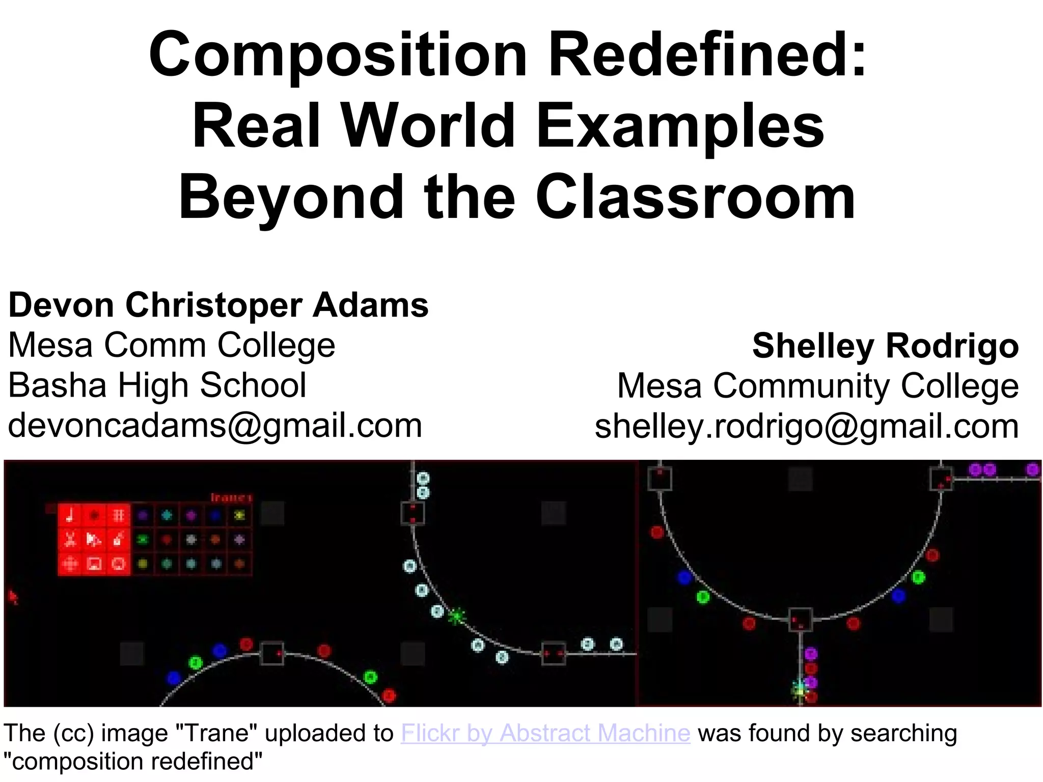 The document discusses the importance of 21st century skills and redefining composition and literacy for the modern world. It provides examples of assignments that develop these skills, including having students create "secrets" from literary characters, reflect on inspirational quotes, engage with science fiction through online wikis and games, demonstrate concepts through pictures, create annotated bibliographies digitally, and present information through virtual timelines and maps. The goal is to move beyond traditional classroom approaches and incorporate new technologies, collaboration, creativity, problem solving and other skills needed for today's world.
