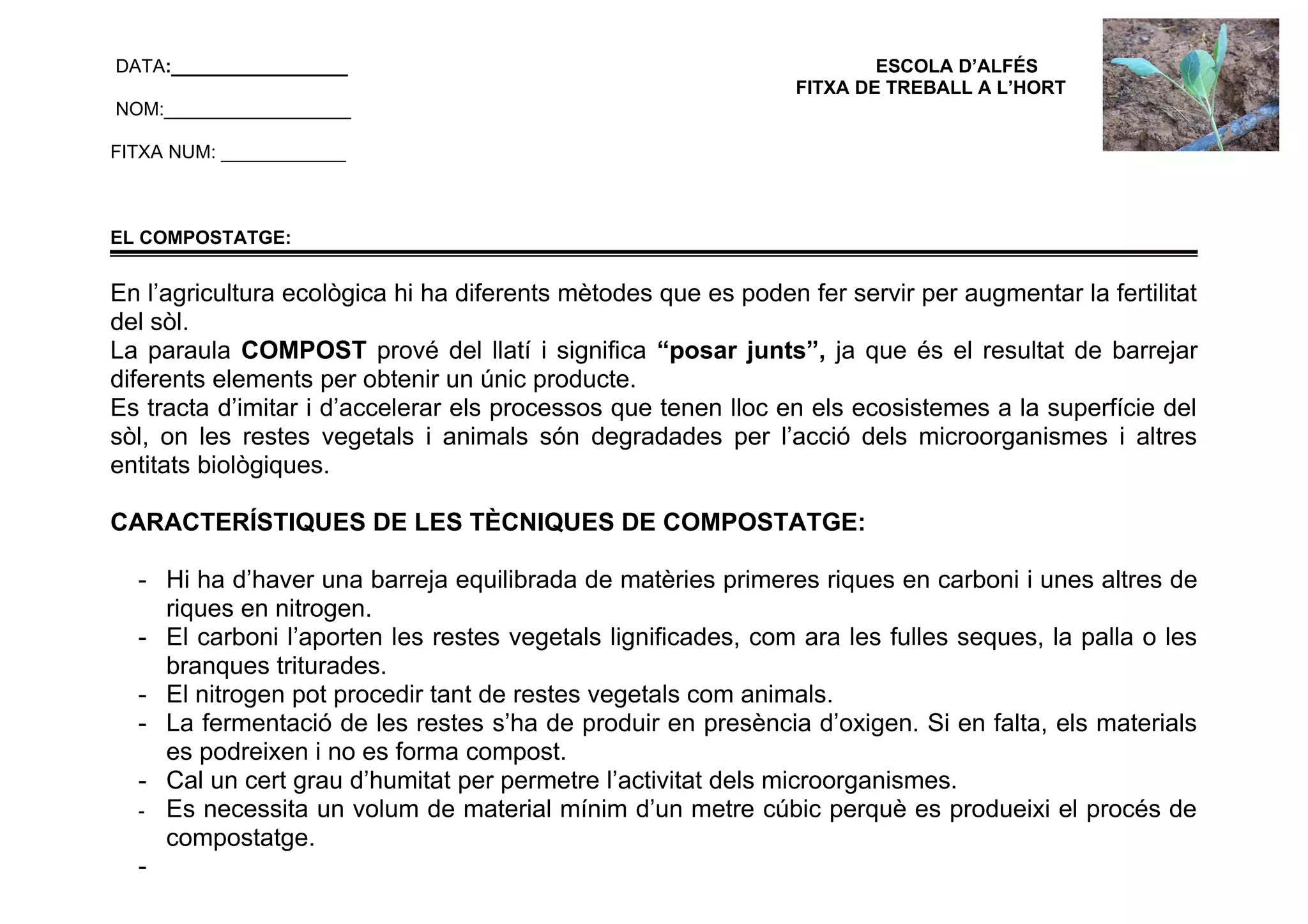 1- DIBUIXA LA ZONA DE COMPOSTATGE DE L’ESCOLA I ESMENTA ALLÒ QUE HI HEM POSAT: