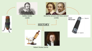 The document discusses the compound microscope and its forensic applications. It provides a brief history of the compound microscope, describing its key inventors like Galileo Galilei and Zacharias Janssen. It then explains the working principle and main parts of a compound microscope, including the mechanical support system, optical system, illumination system, and adjustment system. The document outlines specimen slide preparation techniques and standard operating procedures. It notes some limitations and drawbacks of the compound microscope. Finally, it discusses various forensic applications, including examination of blood and other biological samples, as well as examination of banknotes and security documents.