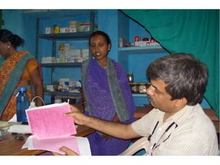 The document discusses comprehensive primary health care in India. It proposes making primary care universal, free, and accessible close to where people live. This would include a more comprehensive package of services addressing both communicable and non-communicable diseases. Village committees would help ensure no one is excluded and services address local health priorities. Community monitoring would provide feedback on equity and quality. Comprehensive primary health care would reduce costs and the need for higher-level care compared to the selective primary care of the past.