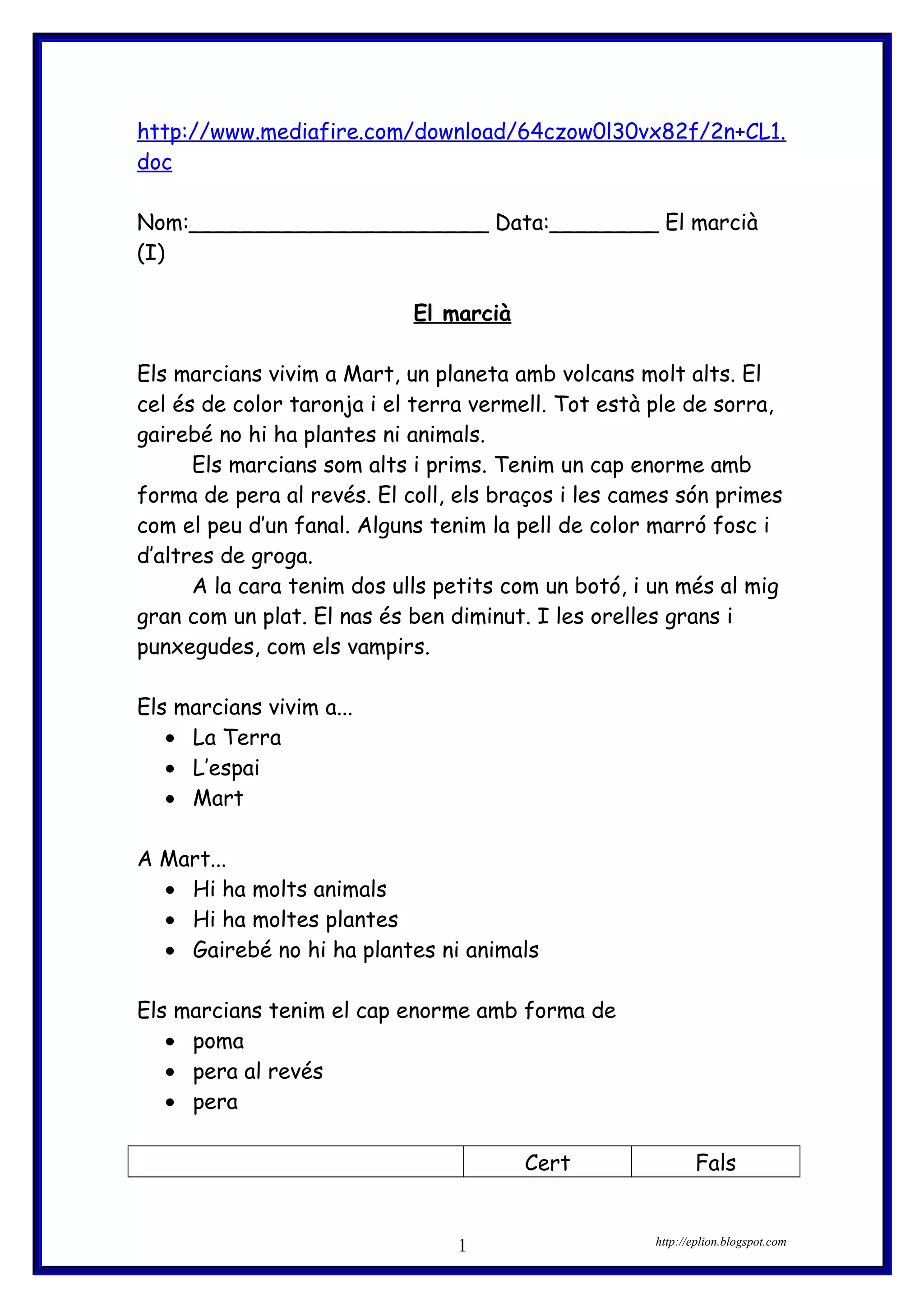 Nom:____________________ Data:________ El marcià (II)