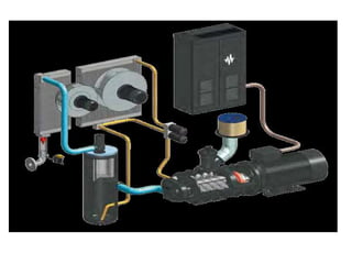3. The key components are the suction air filter, unloading valve, compression unit, oil separator, oil cooler, oil filter and air cooler; and the compressor is controlled through a main control system that monitors sensors for temperature, pressure and alarms.