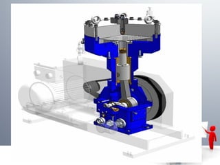 The document discusses different types of compressors used in industries. It describes positive displacement compressors which include reciprocating, rotary, scroll, and liquid ring compressors. Reciprocating compressors can be single acting, double acting, or diaphragm type. Scroll compressors have advantages like high efficiency and lower noise compared to reciprocating compressors. Each compressor type has different applications depending on the process requirements.