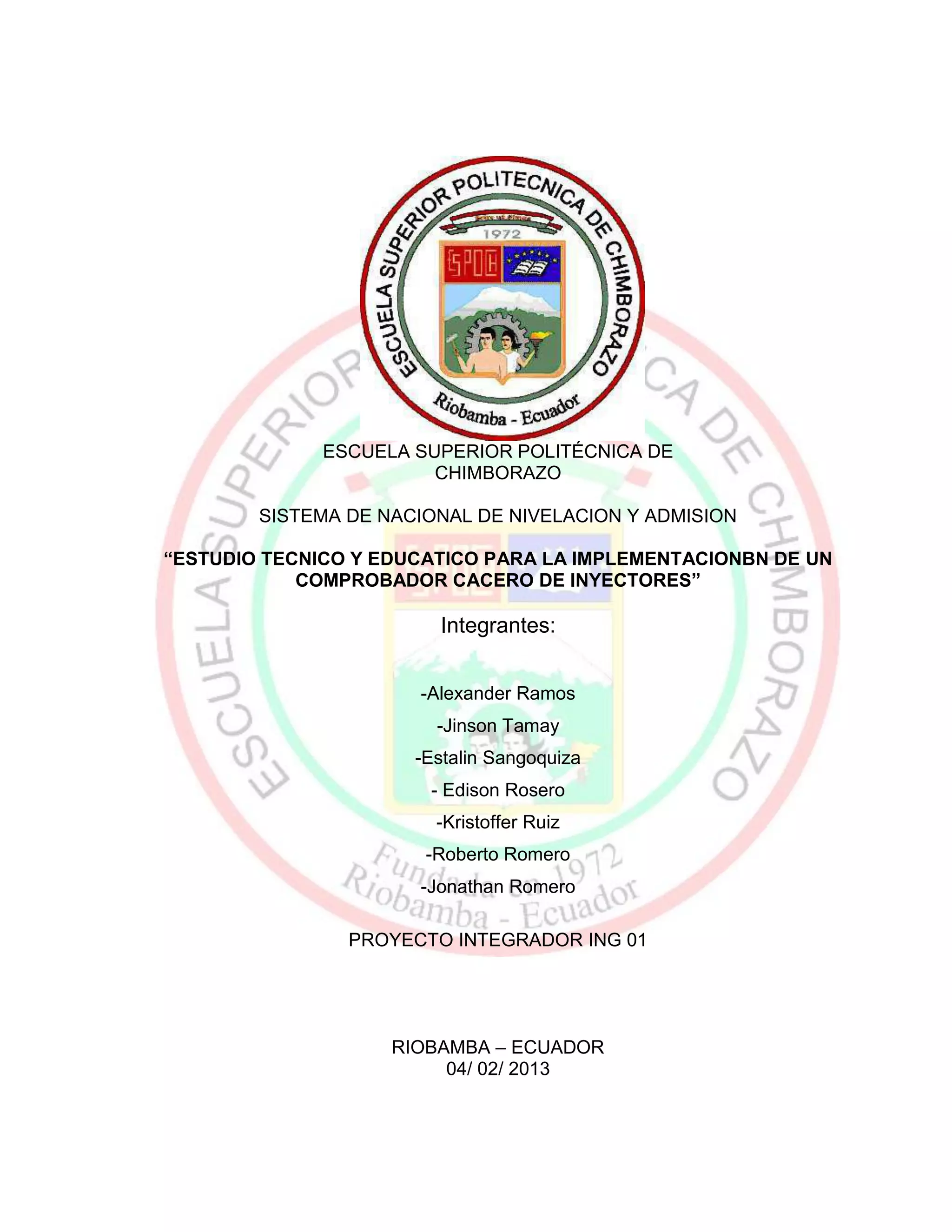 Este documento describe un proyecto de estudiantes de ingeniería automotriz para implementar un medidor de inyectores casero con materiales reciclados. Los estudiantes realizaron encuestas que mostraron que la mayoría de autoridades, docentes y estudiantes apoyaban el proyecto debido a que ayudaría a mejorar la enseñanza práctica, reducir costos y contribuir al cuidado ambiental.