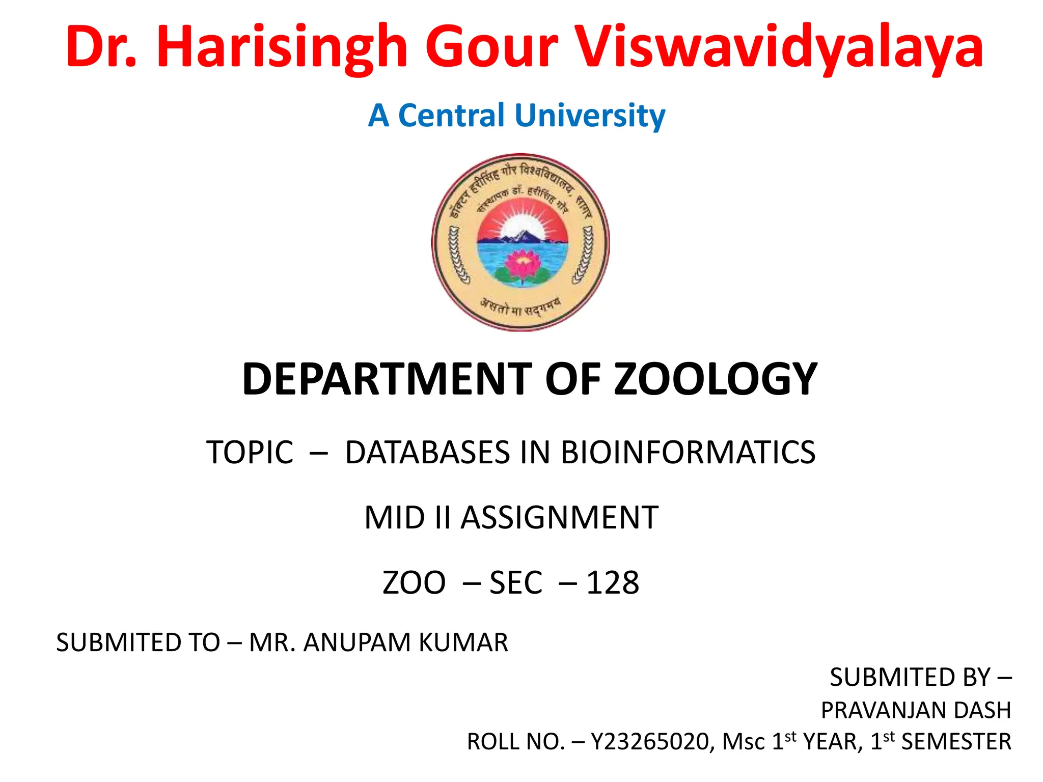 The document discusses biological databases in bioinformatics, explaining their purpose, structure, and types including primary, secondary, and composite databases. Primary databases store original biological data while secondary databases provide processed information derived from primary data. The major public sequence databases mentioned are GenBank, EMBL, and DDBJ, which house raw nucleic acid sequence data from researchers worldwide.