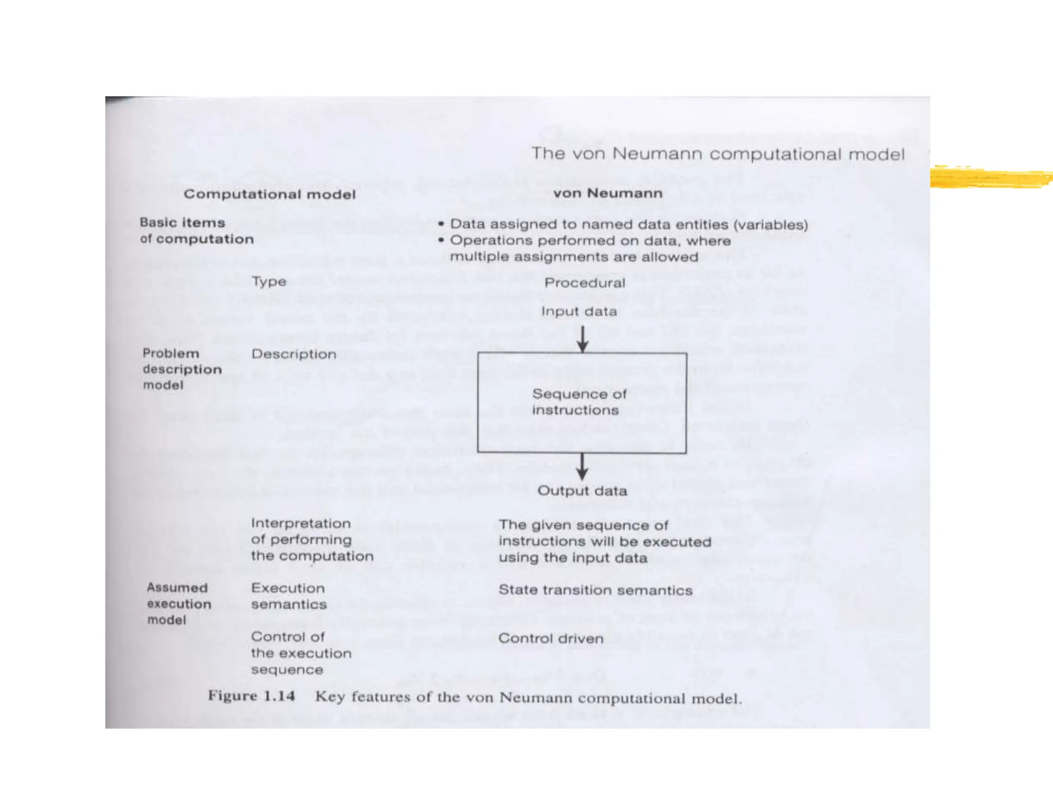 The document discusses computational models and their relationships to programming languages and computer architecture. A computational model defines the basic items of computation, the problem description style (procedural or declarative), and the execution model (interpretation, semantics, and control). Examples are given of the von Neumann model which uses variables, sequential instructions, and state transition semantics. Computational models influence language design and architecture. Granularity and typing are also discussed in relation to both models and languages.