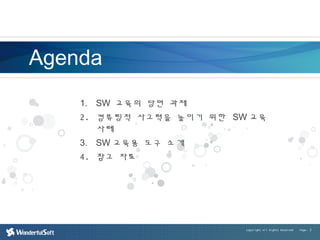 그리고 SW의 핵심에는 코딩이 아닌 컴퓨팅적 사고력를 높이기 위한 Computational Thinking 을 높이기 위함에 있다.
