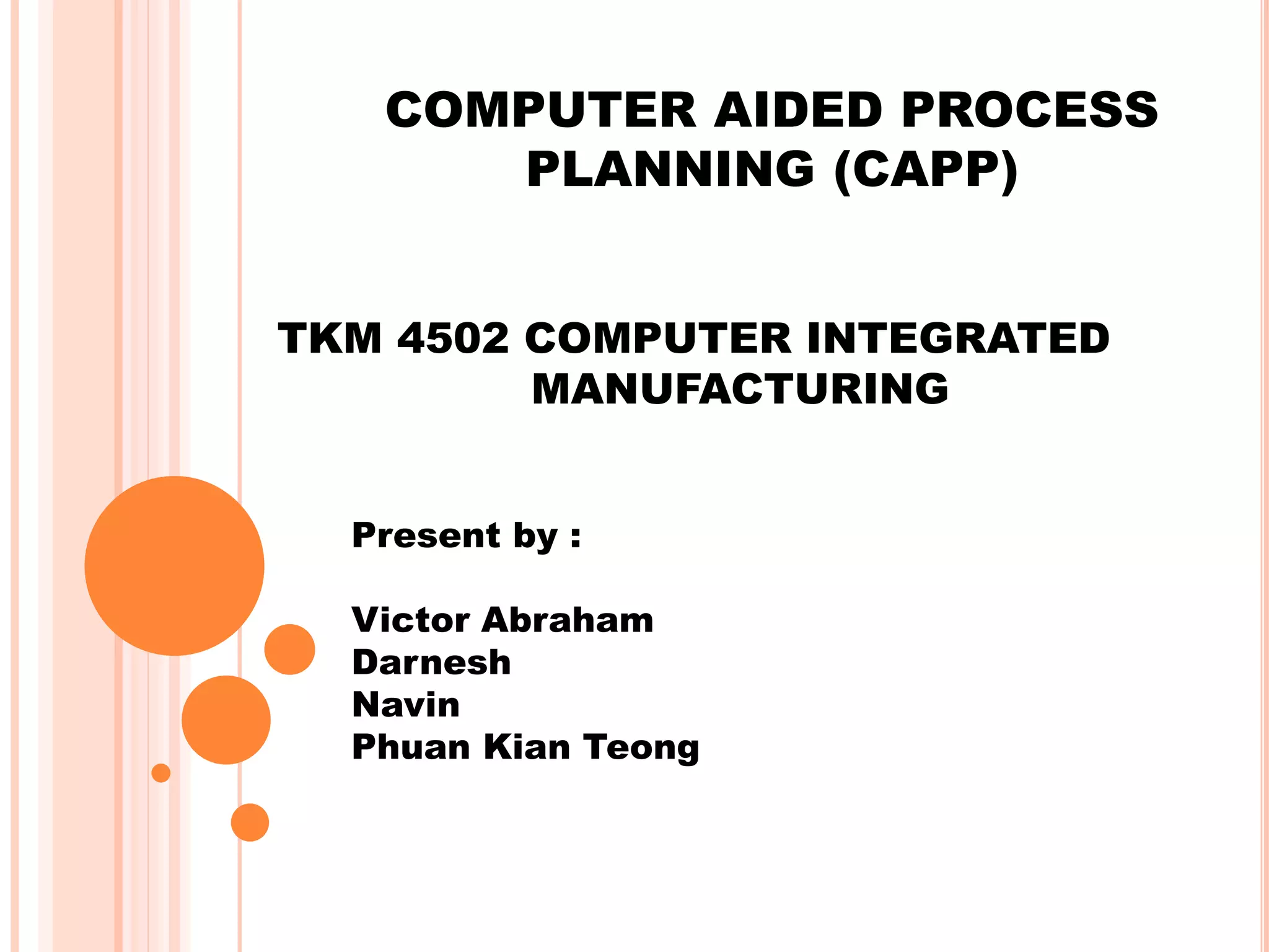 Computer Aided Process Planning (CAPP) integrates computer technology with manufacturing to create efficient production plans from design concepts. It serves as a crucial link between CAD and CAM, optimizing manufacturing processes based on various variables such as costs and equipment availability. CAPP can be implemented through manual experience or advanced programming languages to improve overall quality, scheduling, and cost estimation in manufacturing.