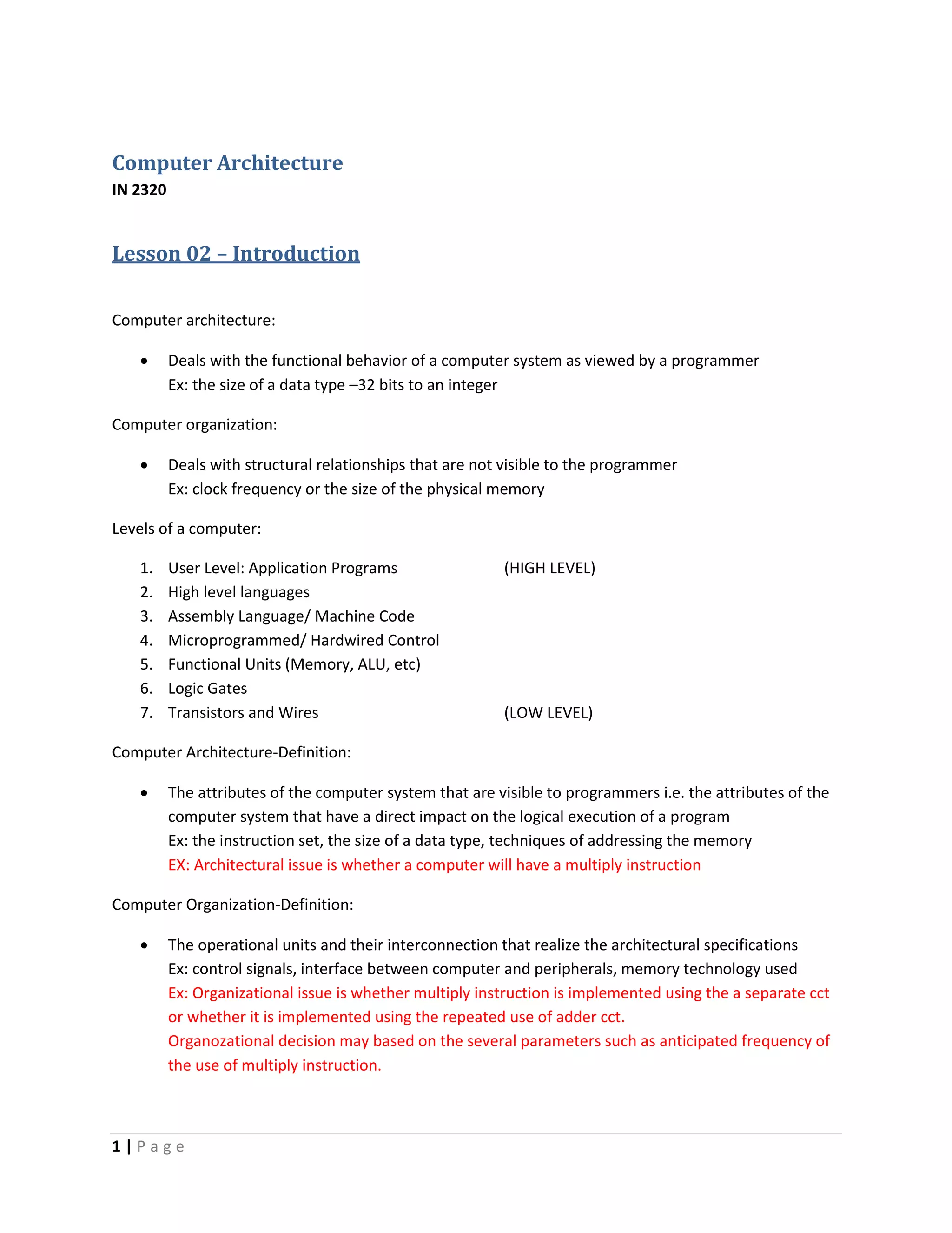This document discusses computer architecture and organization. It defines computer architecture as the attributes of a computer system that are visible to programmers, such as instruction set and data type sizes, while computer organization refers to the structural relationships not visible to programmers, such as clock frequency. Performance metrics like response time and throughput are also introduced. Architectural choices aim to balance factors like cost, performance, and new technology.