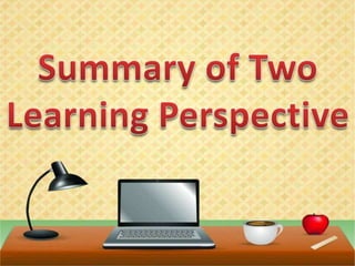 This document discusses constructivism and social constructivism as learning theories and how computers can support these paradigms. Constructivism posits that learners build knowledge through personal discovery, while social constructivism emphasizes that social and cultural contexts influence knowledge construction. The computer can function as an information tool by providing vast resources, as a constructive tool by allowing learners to manipulate and organize ideas, as a co-constructive tool by facilitating collaborative knowledge-building, and as a situating tool by immersing learners in virtual environments.