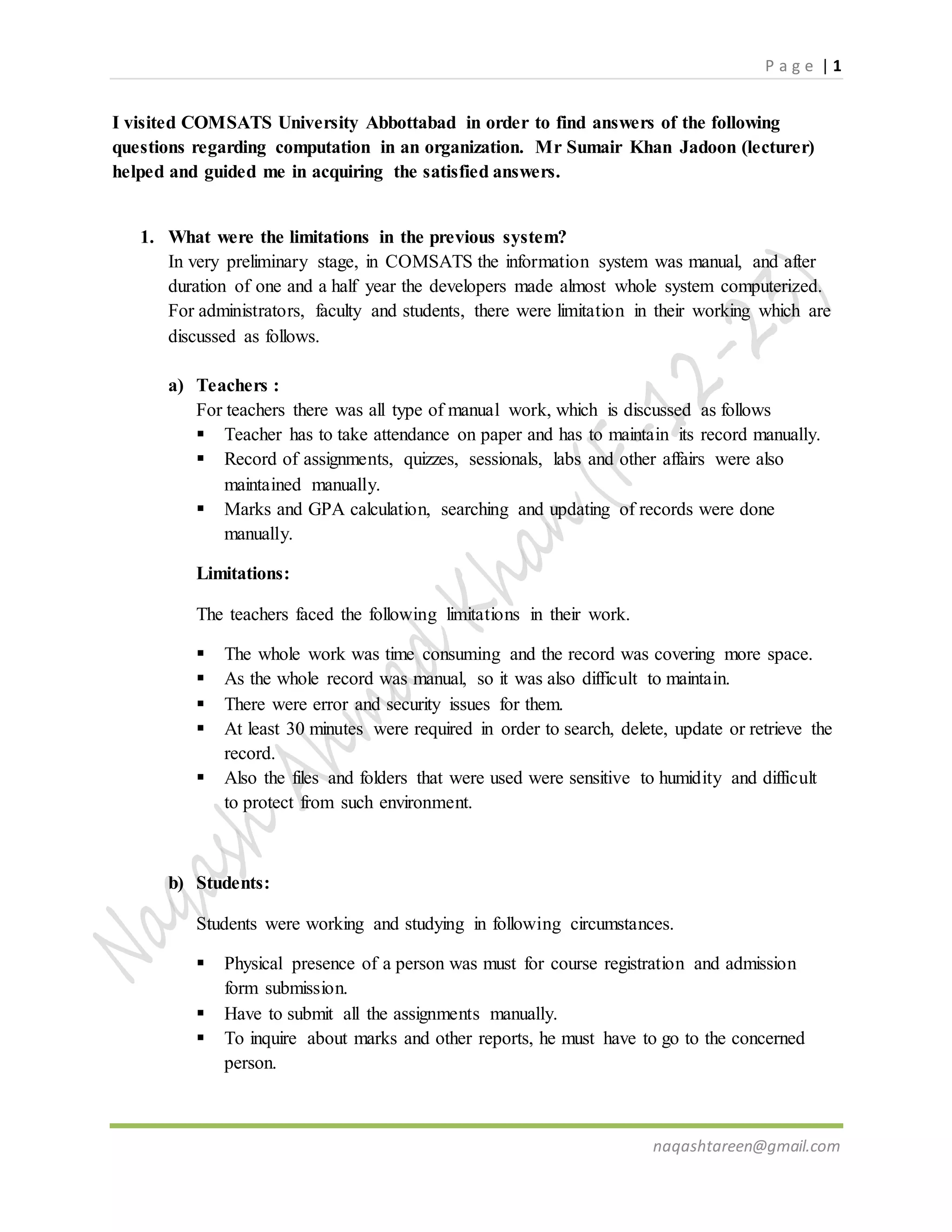 The document discusses the transition from a manual information system to a computerized one in an educational organization, highlighting the limitations of the previous system for teachers, students, faculty, and parents. It details the technologies used for development, security measures, types of networking, and reports generated, as well as the impact on productivity and competitive advantages of the new system. Future enhancements include managing hostel admissions and fully automating library functions.