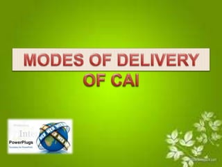 This document discusses computer-assisted instruction and its uses in education. It defines computer-assisted instruction as interactive instructional strategies that use computers to convey and teach material to students while monitoring their learning. The document outlines several types of computer-assisted instruction programs including drill-and-practice, tutorials, simulations, games, and discovery-based learning. It also discusses the advantages and limitations of computer-assisted instruction, as well as how it benefits both students and teachers.
