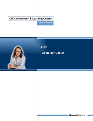 This document provides an overview and contents for a Microsoft computer basics course. The course aims to teach digital literacy skills and basic computer use. It covers topics like common computer terminology, operating systems, and career opportunities. The first module introduces computers and their main components. It defines key concepts and explains how computers are used in various aspects of life. The module objectives are to identify computer roles, parts, and the steps to work with one.