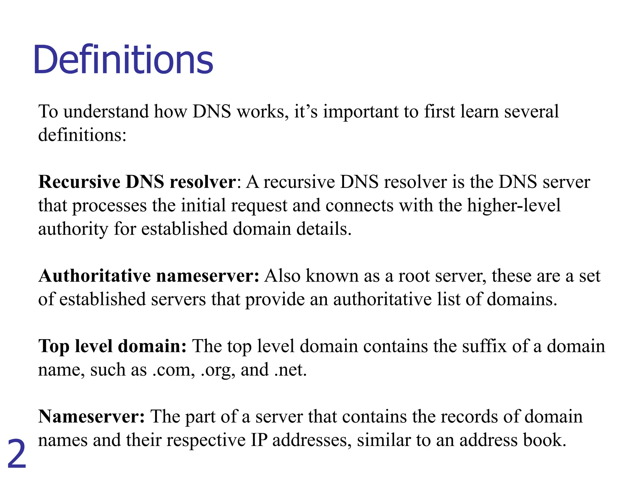To understand howDNS works, it’s important to first learn several