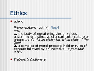 The document discusses several ethical challenges related to information technology, including issues around software piracy, intellectual property, privacy, computer abuse, appropriate internet use, and establishing codes of ethics for IT professionals. It provides examples of both ethical and unethical behaviors related to computing and asks questions about who is responsible for dealing with ethical issues.