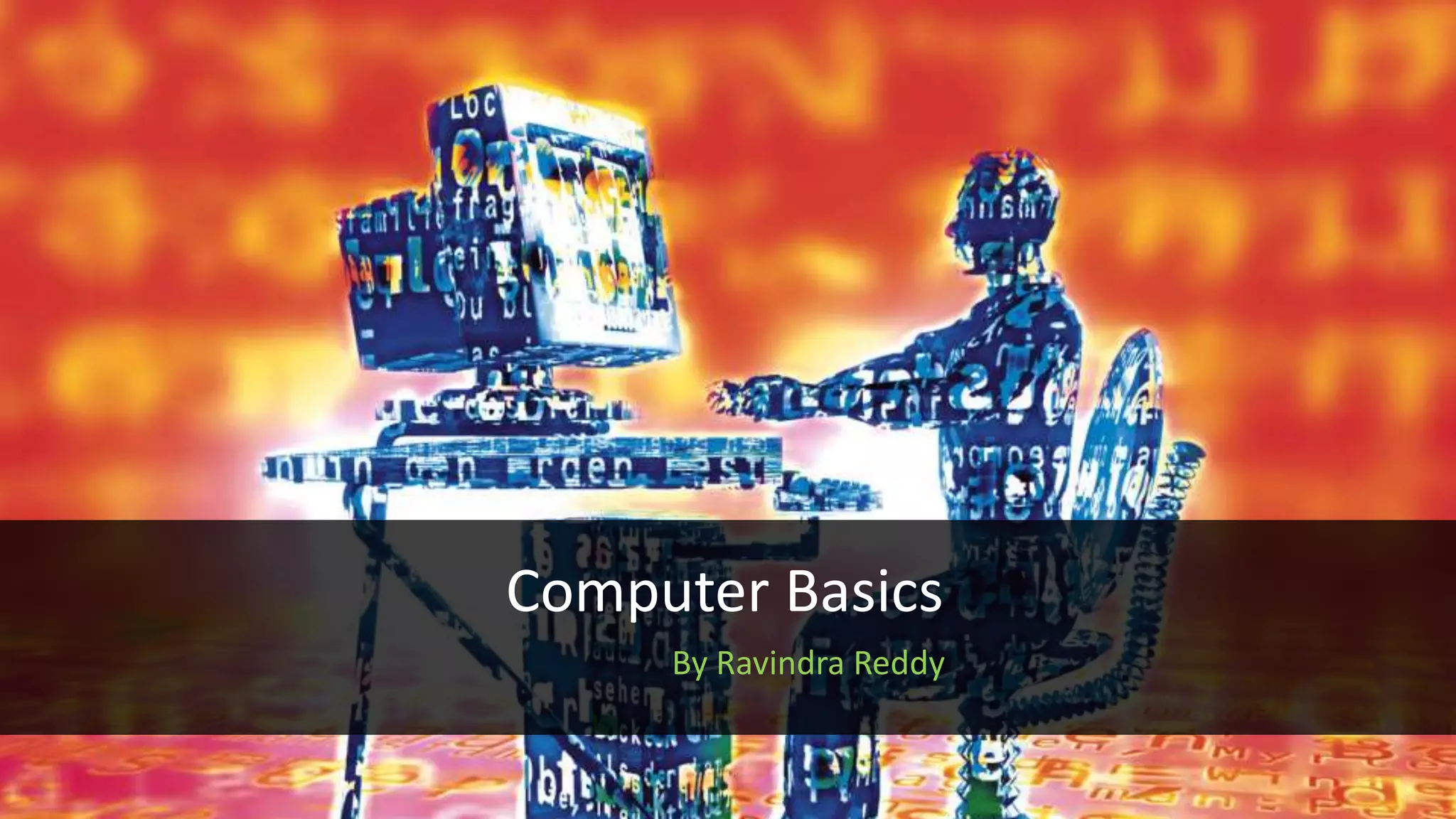 The document discusses different types of computers and their components. It describes personal computers, workstations, minicomputers, and mainframes. It then covers the main components of all computers including the central processing unit (CPU), memory (RAM, ROM), input/output devices, and motherboards. The CPU contains the control unit, arithmetic logic unit (ALU), and memory unit. RAM is further divided into static and dynamic RAM. The document provides an overview of the basic hardware that makes up all computer systems.