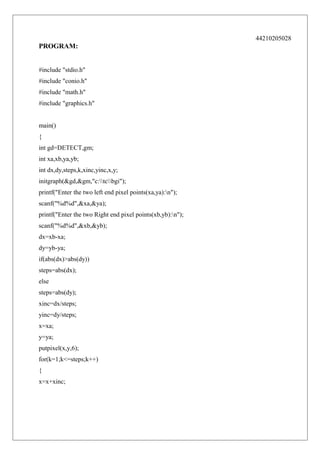 The document describes algorithms for 2D transformations in computer graphics using C programming language. It discusses functions for translation, rotation, and scaling of 2D objects.