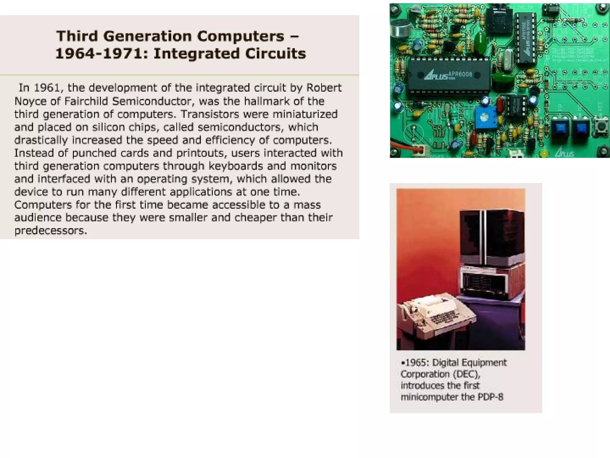The document traces the history of computers from ancient abaci in 3000 BC to modern personal computers and the internet. Some key developments include the creation of the ENIAC, one of the first general-purpose electronic computers, in 1946; the development of transistors which replaced vacuum tubes; the invention of the graphical user interface in 1963 featuring the mouse; the creation of ARPANET in 1969 which connected four computers, laying the foundations of the internet; and the launch of influential websites like Google in 1998 and YouTube in 2005.