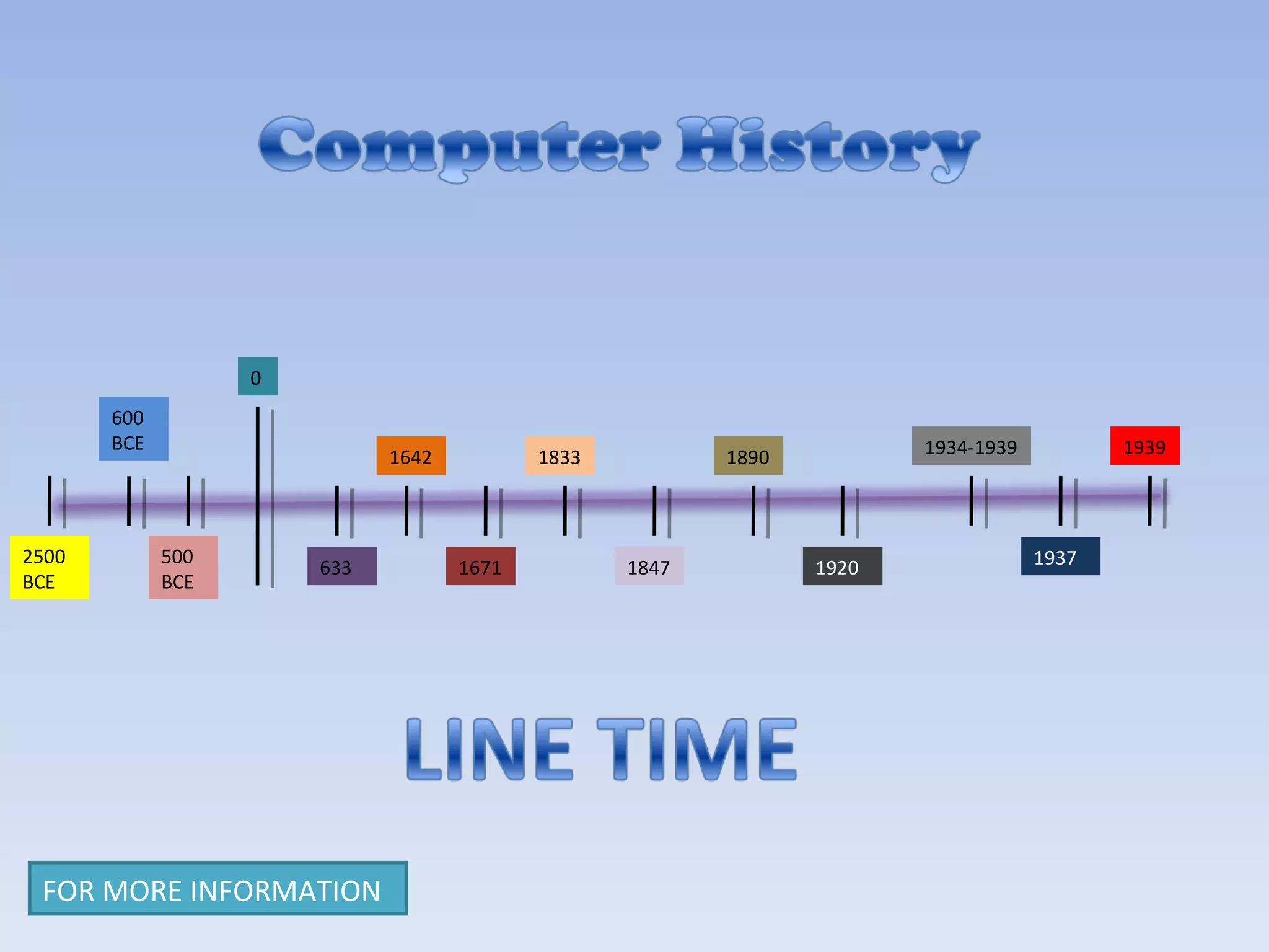 The document provides a chronological overview of milestones in the development of computing technology from 2500 BCE to 1939: