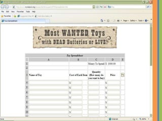 This document lists various computer programs and websites that were showcased including Cauthen's Computer Crew website, Microsoft Excel, Kidpix, Microsoft PowerPoint, Kidspiration, Microsoft Word, and various internet websites.