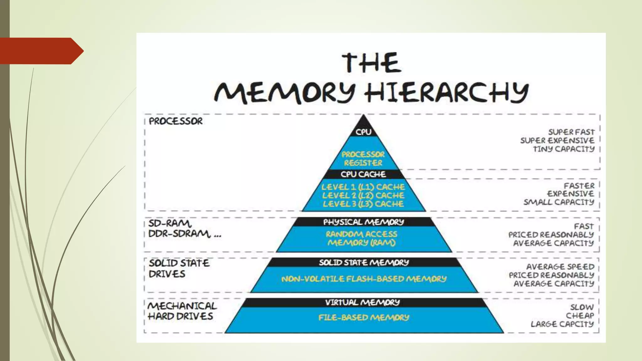 The concept of memory hierarchy in computer architecture affecting performance and programming.