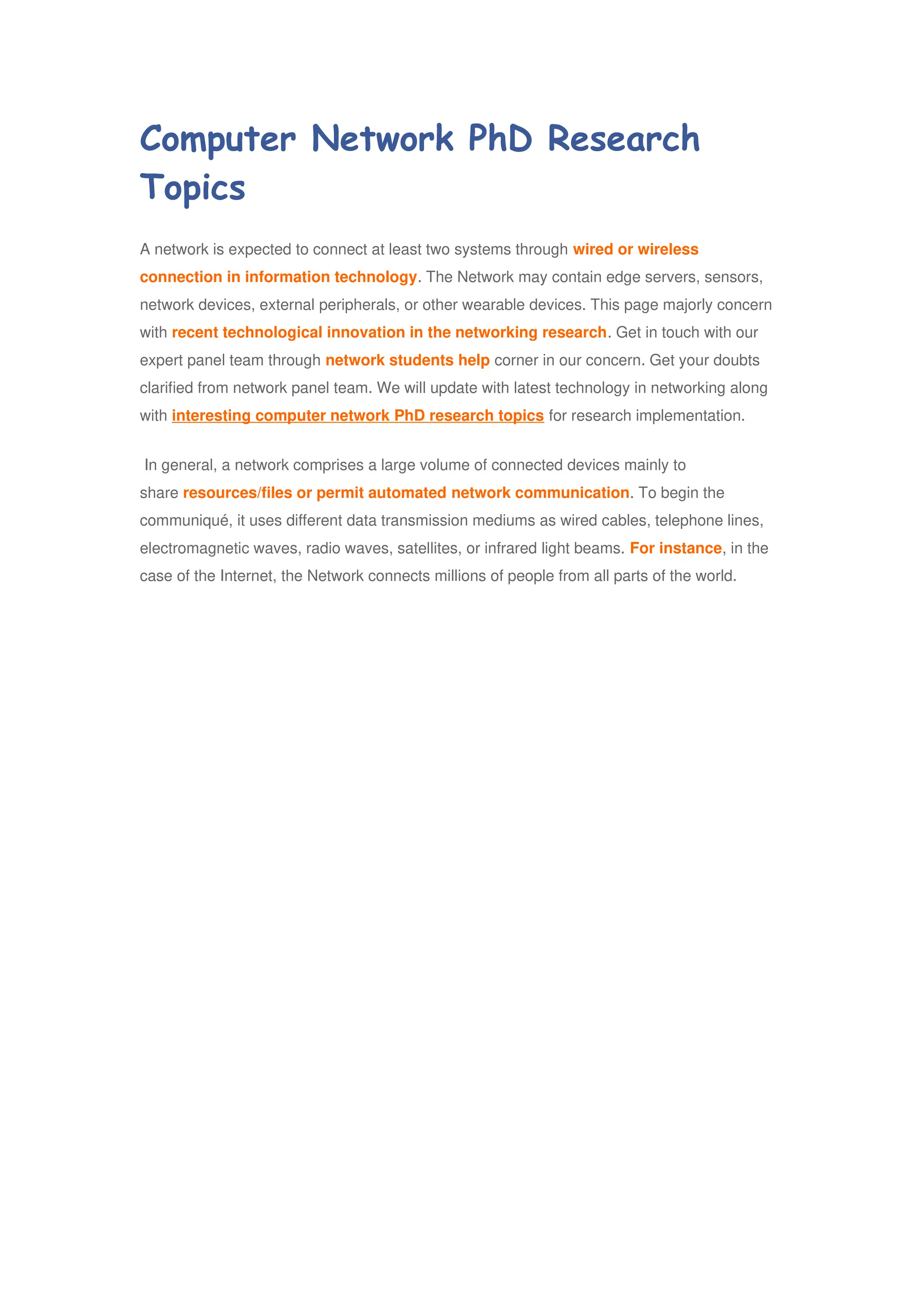 topics correlated to their study. If you are seeking for best PhD Guidance in Network, then