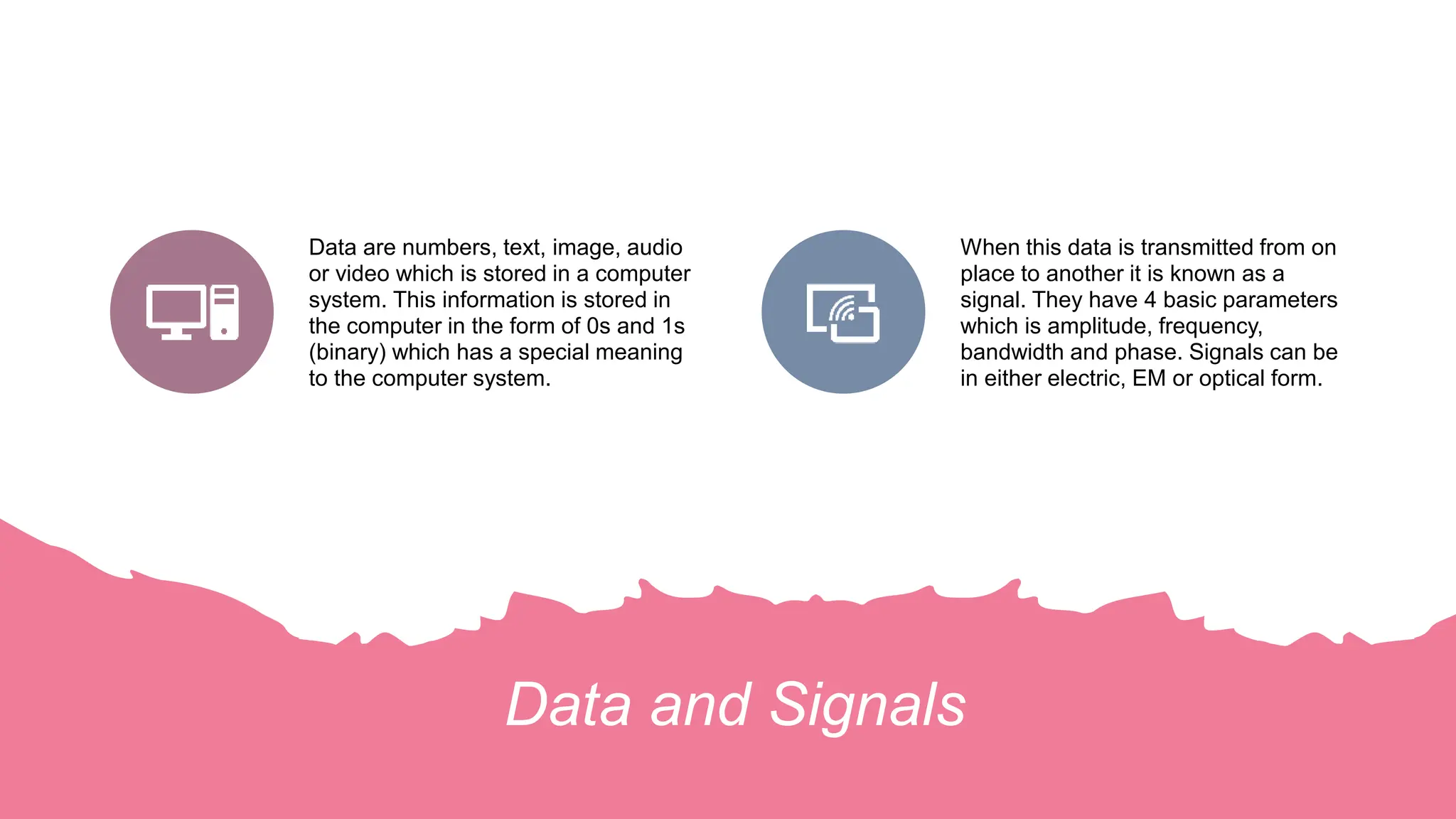 The document discusses computer networks and data communication, explaining key terminologies such as data, signals, and transmission media. It outlines the four basic parameters of signals (amplitude, frequency, bandwidth, and phase) and differentiates between guided (wired) and unguided (wireless) transmission media. Additionally, it describes the data transfer rate as the speed at which digital data is transmitted from one location to another.