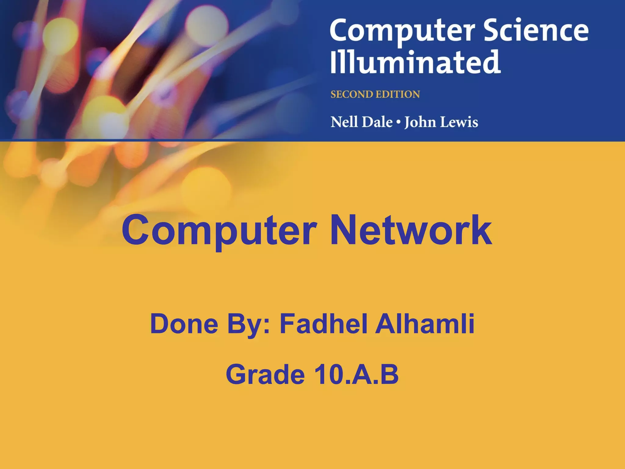 This document discusses various topics related to computer networks including definitions of key terms like network, node, data transfer rate, client/server model, file server and web server. It describes different types of networks including local area networks (LANs), wide area networks (WANs) and metropolitan area networks (MANs). It also discusses network topologies like ring, star and bus topologies. Additionally, it covers network addressing using IP addresses and hostnames, the domain name system (DNS) for translating hostnames to IP addresses, and firewalls for protecting local area networks.