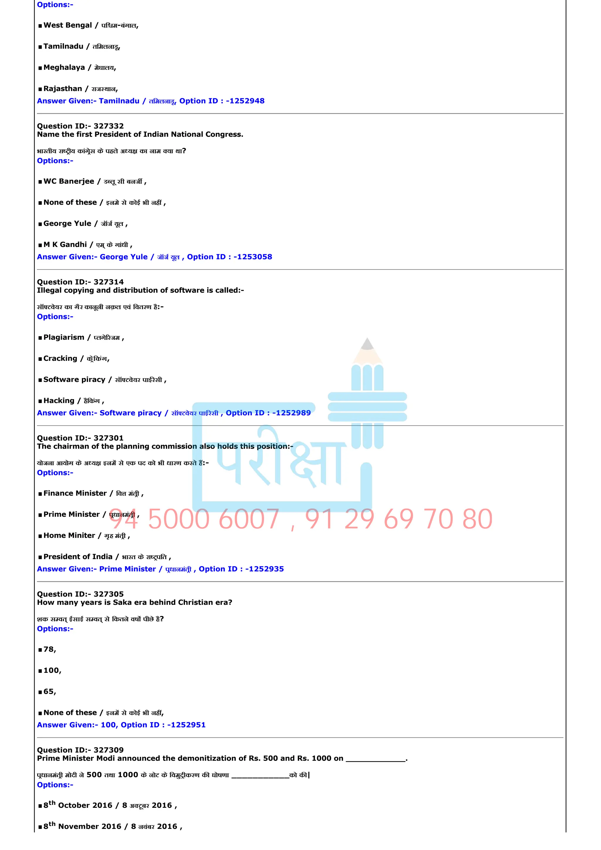November 2016 / 8 नवंबर 2016 , Option ID : 1252966