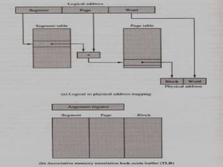 The document discusses memory organization, focusing on the hierarchy of memory types including CPU registers, cache, main memory, and auxiliary memory. It explains key concepts such as associative memory, cache management strategies, and virtual memory, detailing how these components interact to optimize performance and storage. Additionally, it covers memory management systems, emphasizing dynamic allocation, segmented pages, and address mapping techniques.