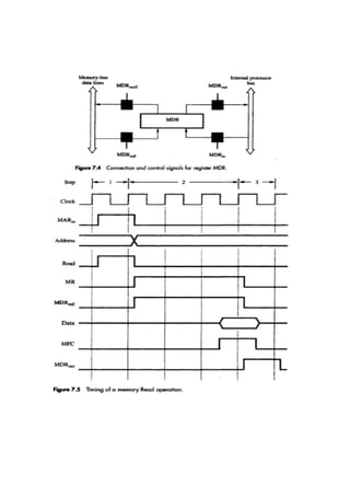 2) Registers, memory, and an arithmetic logic unit (ALU) are the main components. Instructions are executed by transferring data between registers and performing arithmetic or logic operations in the ALU.