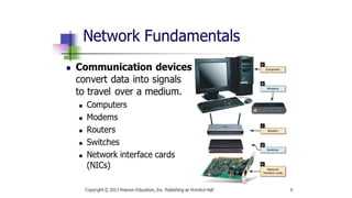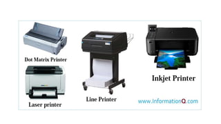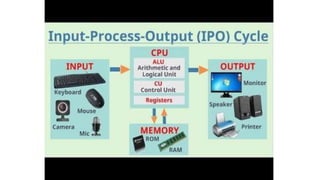The document discusses various computer peripherals including input devices like keyboards and mice, output devices like monitors and printers, storage devices like hard drives and USB drives, and communication devices like modems, routers, smartphones, and Bluetooth devices. It describes the functions of these different peripheral types and provides examples of specific peripherals like keyboards, scanners, speakers, hard drives, Wi-Fi routers, and Bluetooth speakers.