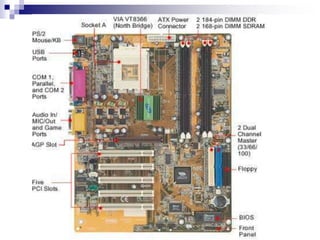 The document provides an overview of computer basics, highlighting that a computer is an electronic machine designed to input, process, output, and store data. It describes the three major components of an information processing system: hardware, software, and peopleware, alongside basic units of measurement such as bits and bytes. Additionally, it covers essential hardware components, input/output devices, secondary storage, and the types of software that enable computer functionality.