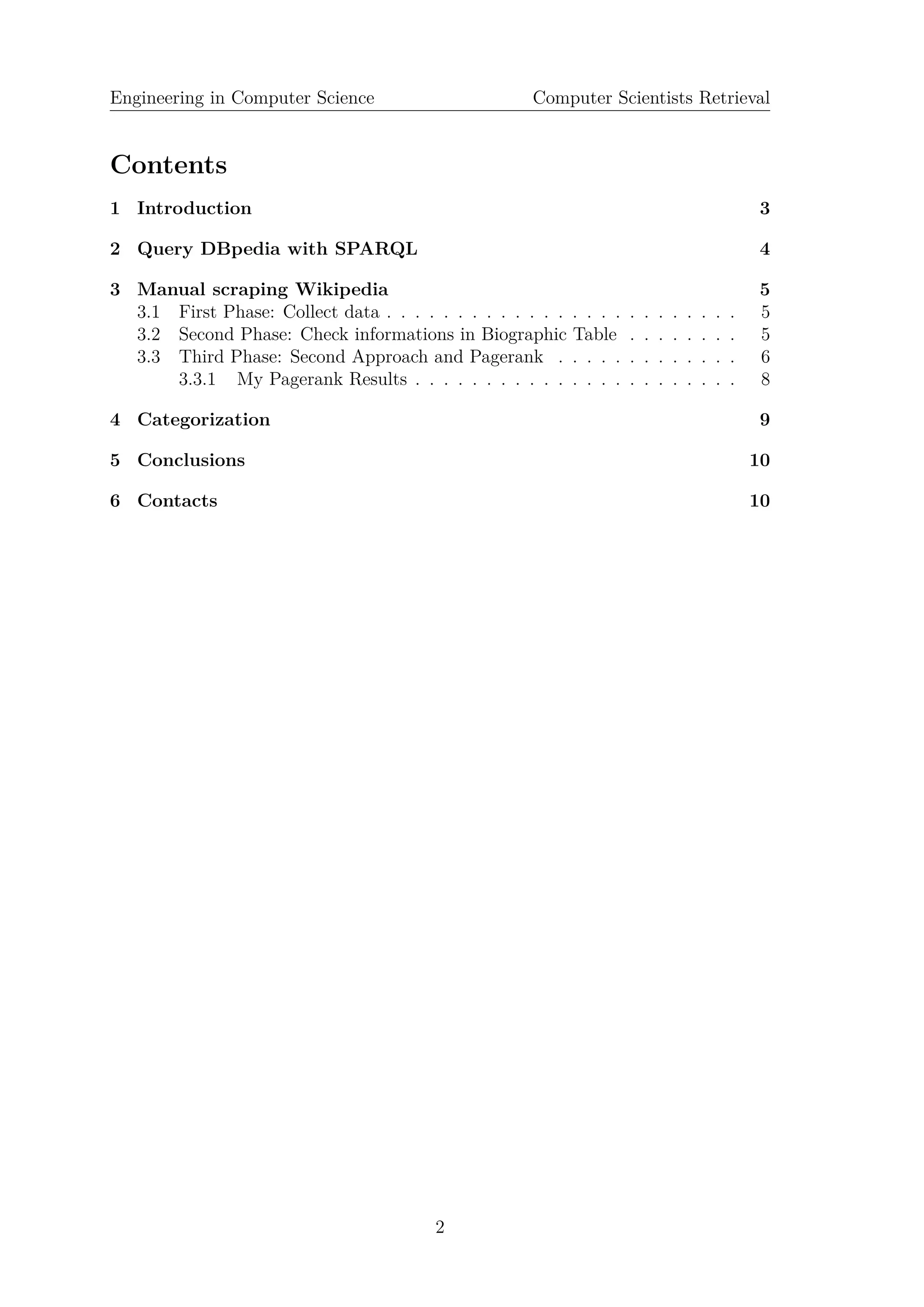 The document outlines a project that applied Google's PageRank algorithm to identify and analyze influential computer scientists, inspired by a previous study on rock guitarists. It describes the methodology involving data collection from Wikipedia and DBpedia, including challenges faced due to the lack of comprehensive data on computer scientists. The project resulted in a directed graph representing connections between scientists and included a ranking of their fields of study based on the information gathered.