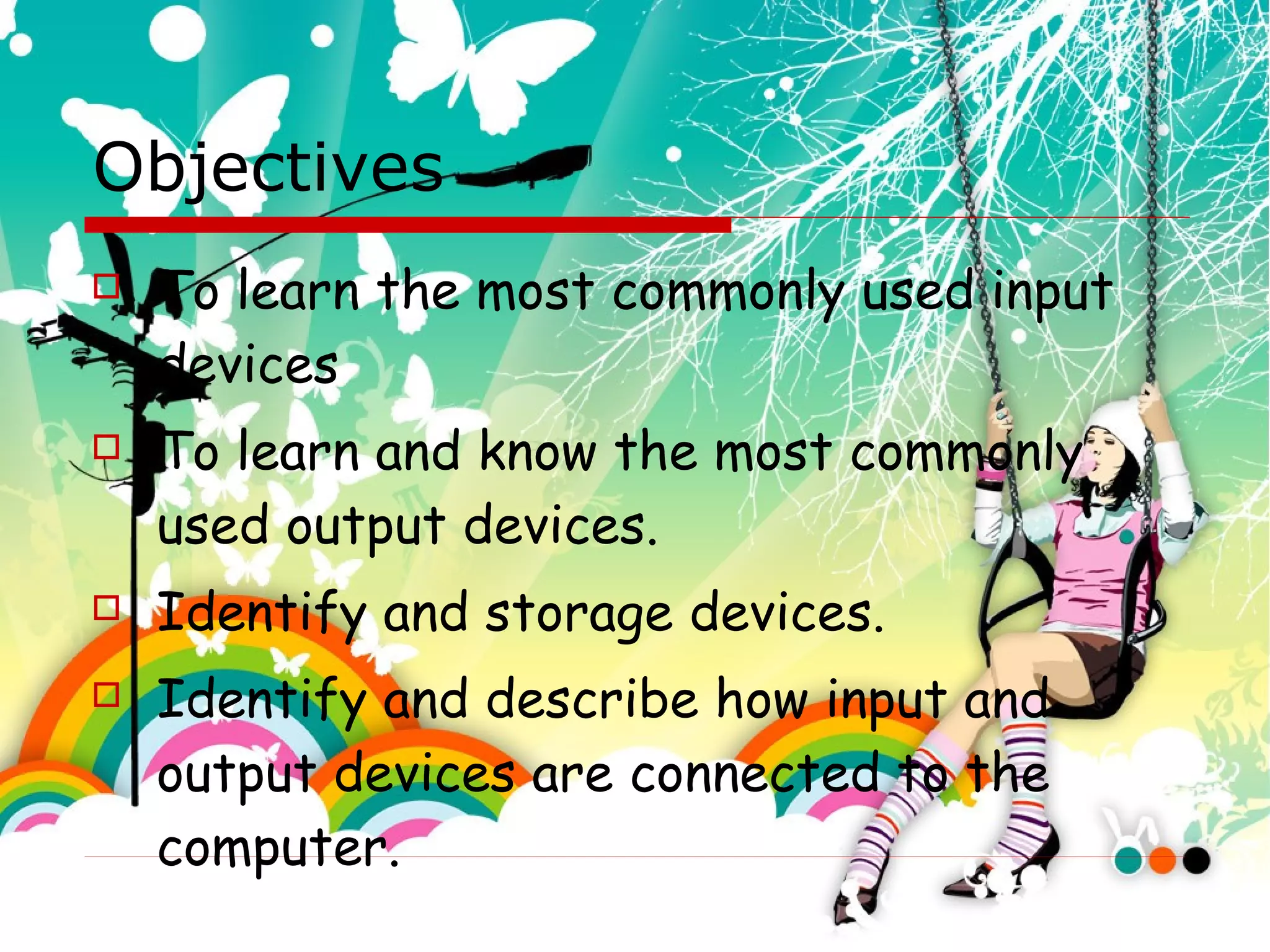 The document discusses computer system hardware input, output, and storage devices. It describes common input devices like keyboards, mice, touchscreens, and microphones. Output devices mentioned include monitors, printers, and speakers. Storage devices covered are magnetic drives, optical discs, solid state drives, and removable media like USB drives. The document also discusses how input/output devices connect to computers and tips for caring for storage media.