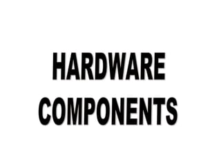 A computer is an electronic device that takes input, processes it, and provides output. It uses binary digits (0s and 1s) and stores data for further processing. The main components of a computer are the central processing unit (CPU), memory, storage, input devices, and output devices. The CPU contains the control unit and arithmetic logic unit (ALU) and works with the operating system and other programs to process data. Memory (RAM and ROM) is used to store programs and data temporarily or permanently. Common input devices include keyboards, mice, and scanners. Common output devices include monitors, printers, and speakers.