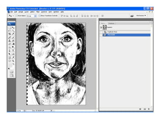 1. The document provides instructions for using Photoshop to convert photographs into digital silkscreens based on Andy Warhol's techniques. It describes how to manipulate images, add layers and effects, and save work.