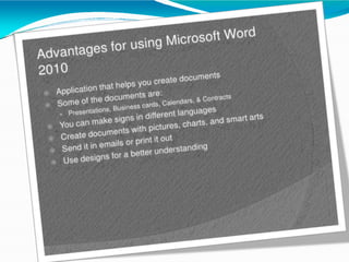The document provides an overview of various computer software including Disk Operating System (DOS), Windows, and Microsoft Word and Excel. It explains the functionalities of DOS, the history and features of different Windows versions, and the components and advantages of MS Word. Additionally, it introduces Excel as a program for creating spreadsheets and performing calculations.