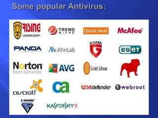 III. Popular antivirus options include free programs like AVG and paid solutions like Norton and Kaspersky, which are effective but may not always restore damaged files to their original state. Regular scanning and updating is needed to maintain protection.