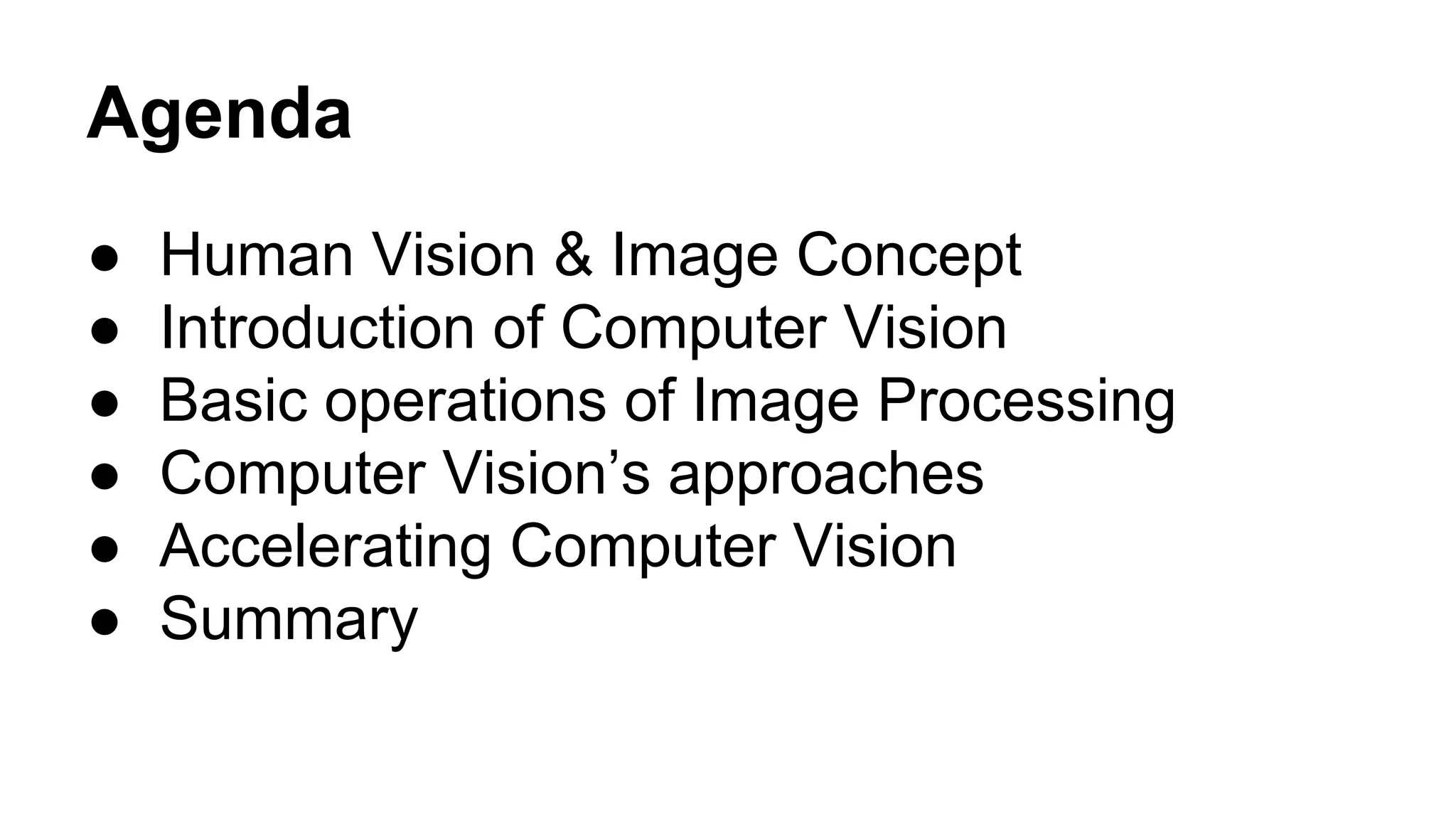 The document provides an overview of computer vision, including its definition, fundamental operations such as image enhancement and segmentation, and approaches like pattern recognition and motion analysis. It highlights the differences from human vision, emphasizing the necessity for high processing performance and cognitive adaptability in various environmental conditions. Additionally, the document discusses technologies that accelerate computer vision, including parallel programming and GPU computing, and concludes that the future of computer vision relies on advancing software technology.