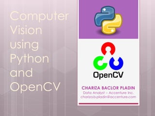 The document discusses computer vision using Python and OpenCV. It begins with an introduction to robotics and artificial intelligence vs robotics. It then covers computer vision, introducing Python and OpenCV. The rest of the document discusses digital image representation, computer vision components, OpenCV examples, and basic requirements for image processing using OpenCV.