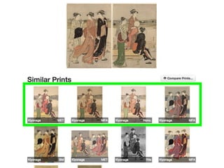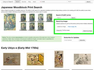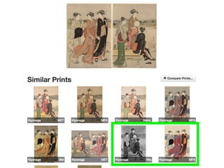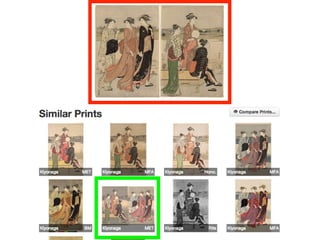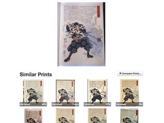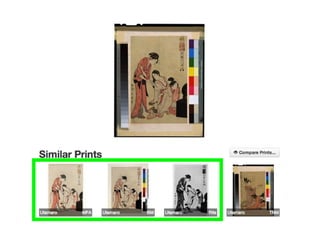 This document summarizes a symposium honoring James Watrous that included discussions on using computer vision in art historical investigation and image similarity analysis to study woodblock prints. It describes how image analysis can help identify similar images across different collections and merging photo archives to create a large international image database for researchers.