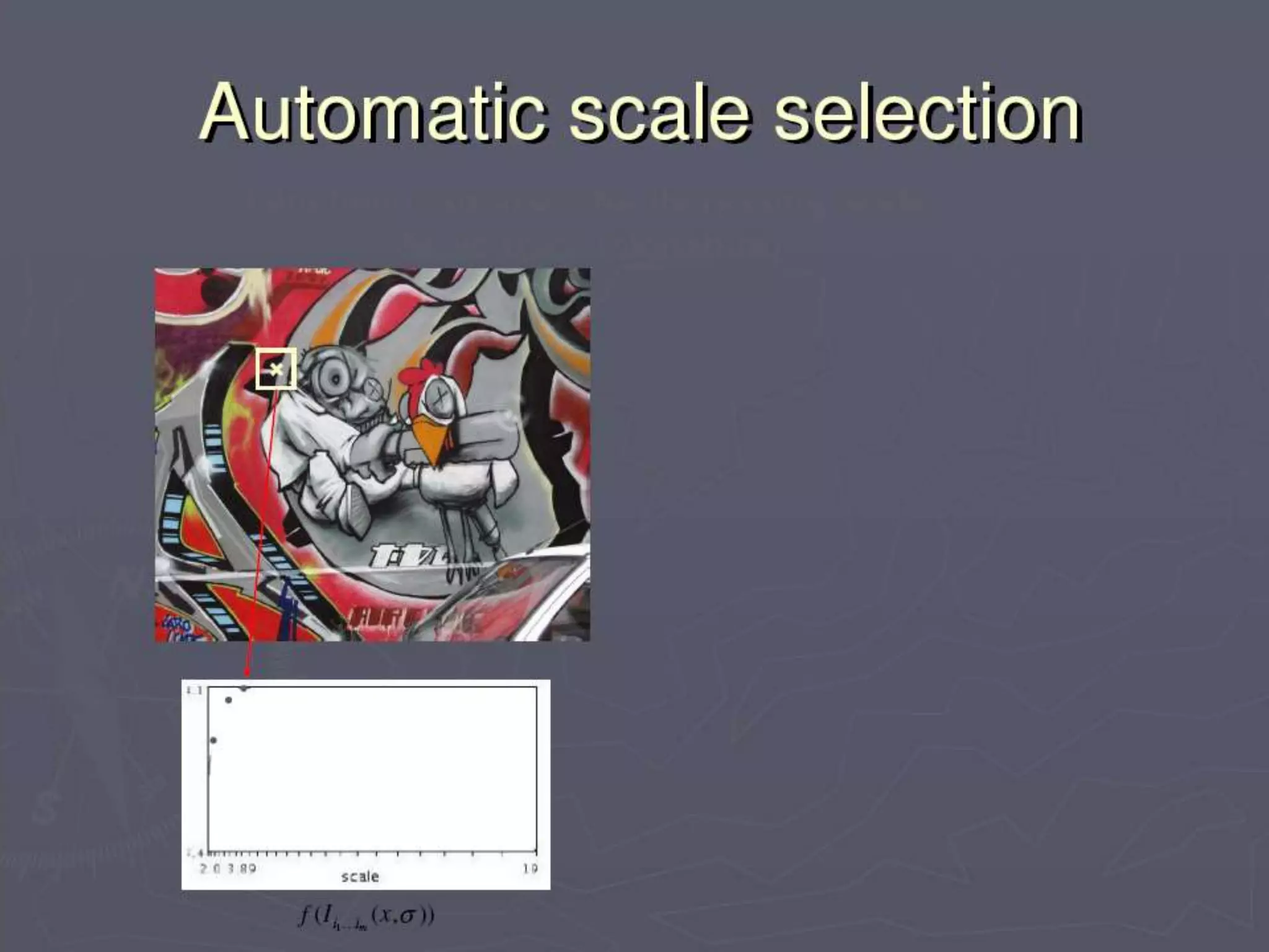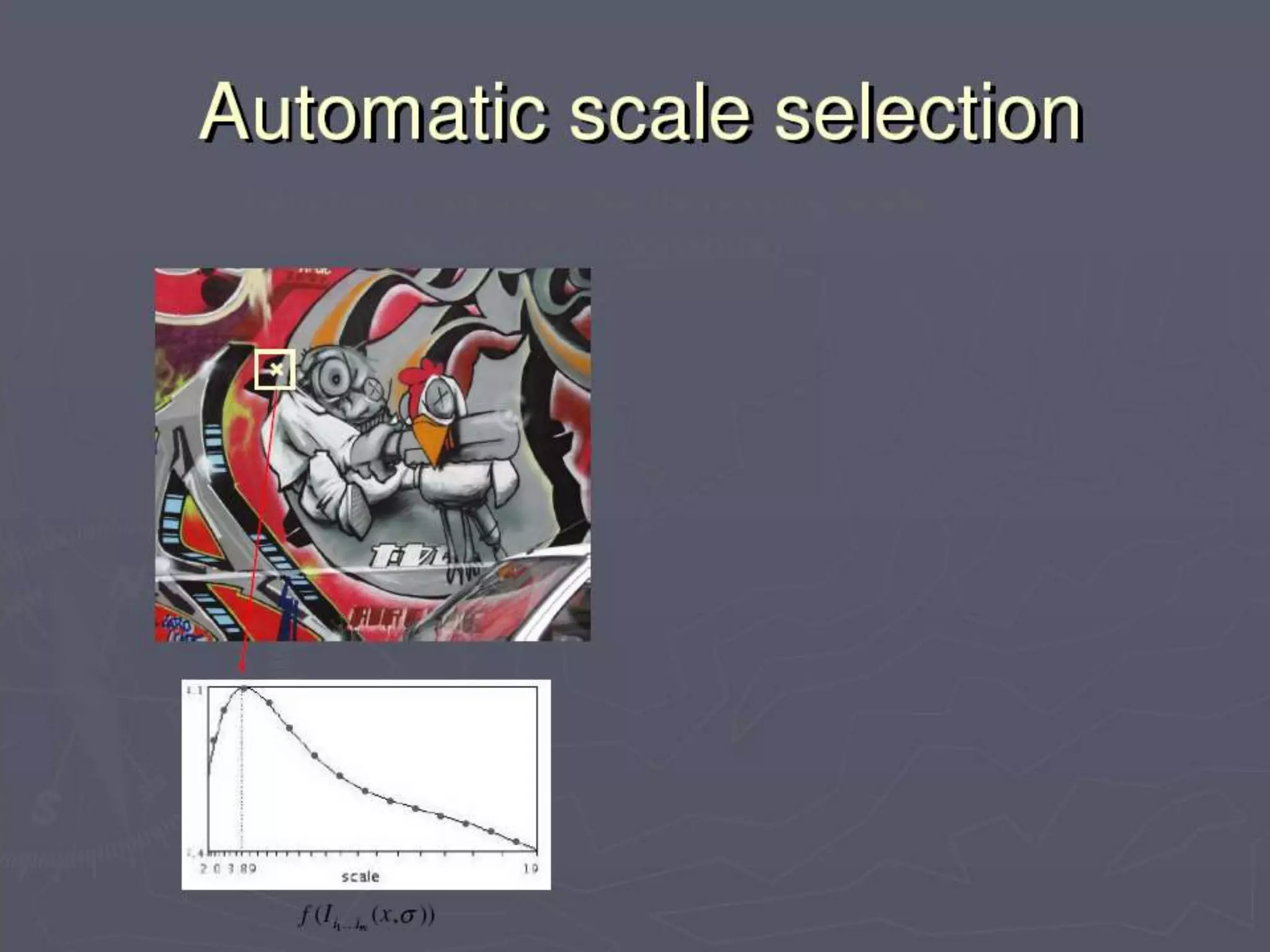 Explains scale selection and characteristic scale in relation to Laplacian response.